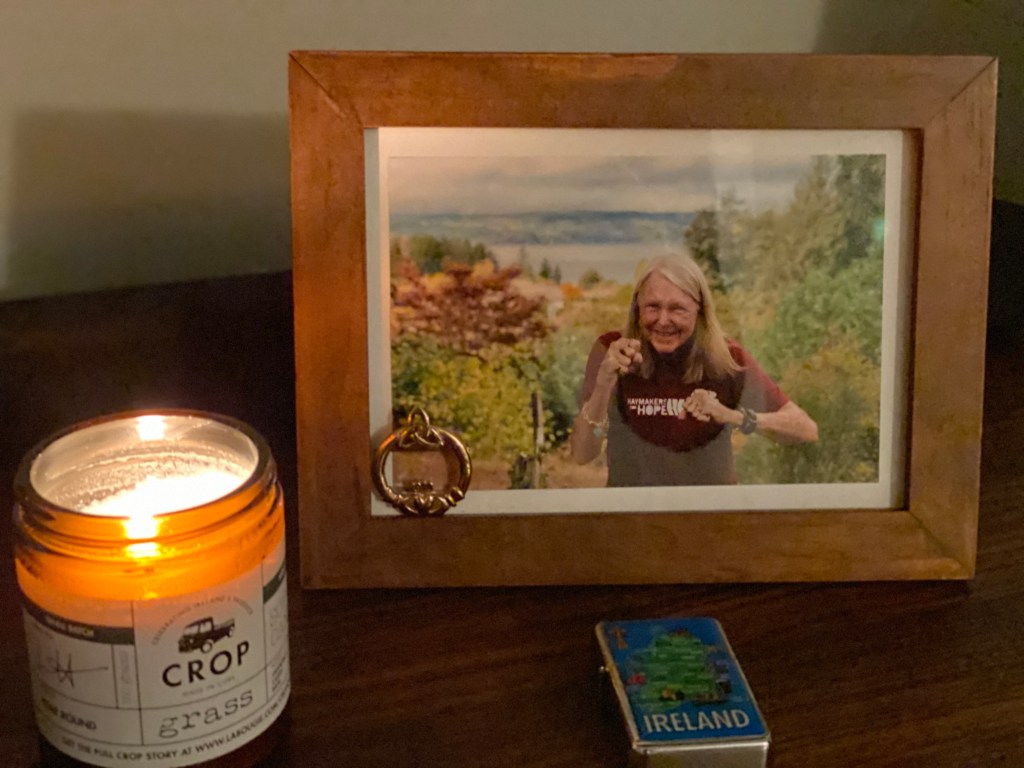 I was reading to you all the comments people had shared on Facebook when I asked them to finish the sentence ‘What I love most about Eileen is….’ SO many people responded with things like ‘her eyes’, ‘her smile’, ‘her spirit’, etc, but the underlying theme was ‘love’ – how much love you had inside you and how much love you’d given the world. Mom, you have SO many people in the world that love you. I’ll admit there were even times this summer I was overwhelmed by all the outreach, how many people wanted to know your status, how you were doing, pass along thoughts/love etc… My phone was buzzing non stop and there were times I wanted to just smash it against a rock, there was so much going on. But that afternoon there we were, just us sitting together, no interruptions, and while sharing everything that everyone said they loved about you I got completely overwhelmed again. Not from stress or frustration this time, but from the sheer amount of love that you’d inspired. With tears streaming down my face, the memory of an old conversation came rushing back, shaking my body with the force of a bolt of lightning…