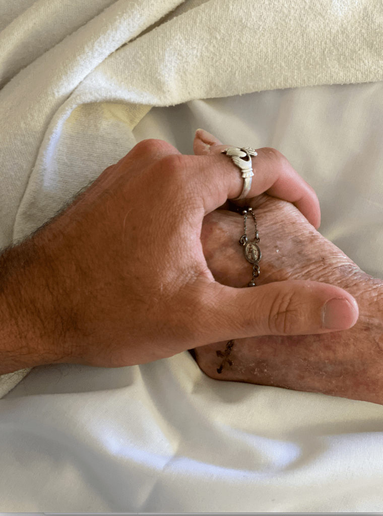 This, of course, was all going on inside my head and so after taking a few breaths to compose myself, I shared my realization with you out loud. As your medicine had been increased that morning, you were still in a pretty far off place, just kinda laying there… But as I finished my story and said, ‘Thank you Mom for teaching me what ‘Rich in Love’ really meant’ and that I finally understood – you ‘woke up’ for just a moment with the biggest smile on your face and squeezed my hand so tightly… then drifted back off to sleep.